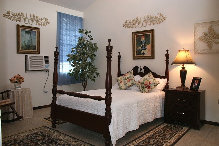The guest room is located in the first level and it has a Queen Size bed. This is the only bedroom without air conditioning, but being in the lower level keeps it quite fresh as it is not hit directly by the sun. It has a ceiling fan and we provide an extra stand fan, just in case.