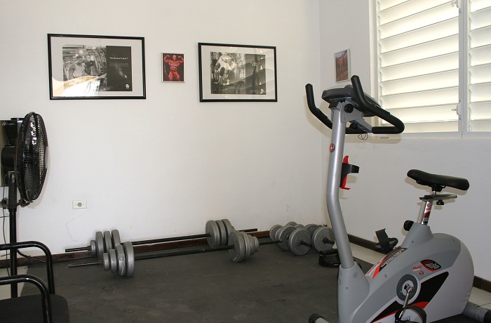 The gym is equipped with free weights, dumbells and a set of "Perfect Push Ups" handles. There are also jogging tracks less than five minutes away, for the fitness minded guests. In fact, the road adjacent to the house has a one mile long bike track which you can use to walk or jog, and it has a nice grading.