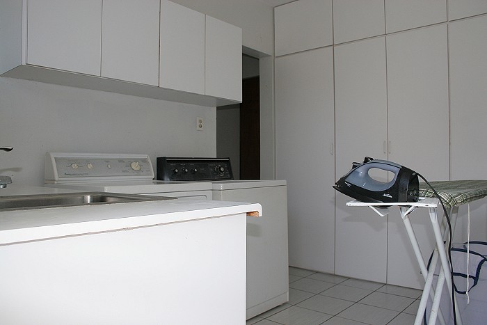 The laundry room has a washing machine, dryer, ironing board, iron, a sink and a closet where you can hang your clothes as you iron them. You can use our detergent and softener. For your convenience, we also provide you with a clothe's hamper in every room. So, you can travel light as you can do all your laundry here!