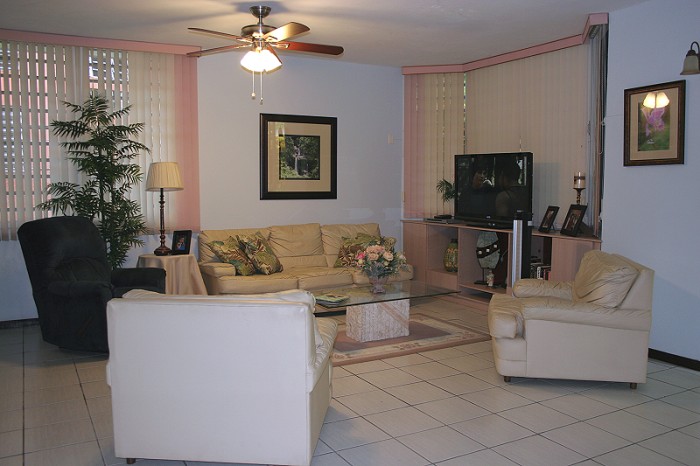 You have found a rare gem! This enormous and luxurious home is available for your enjoyment during your stay in Western Puerto Rico. The property includes: 4 air conditioned bedrooms, one guest room with ceiling fan, 4 bathrooms, formal living room, formal dining room, ample kitchen with dinnette, family room, laundry room, media room with a gigantic projection screen, a gym, double carport with electric doors, a covered terrace and an open terrace where you can get a nice suntan, and a big and nice L shaped swimming pool. It accomodates up to 10 adults and a baby or toddler with the provided beds. All the furniture, linen, towels, kitchen and dining utensils are included. We also include the basic kitchen products so you can get the main ingredients and prepare your own meals.